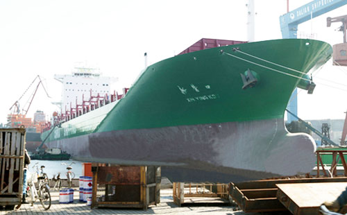 河鋼舞鋼是國內通過船板認證品種最全、級別最高的廠家,先后通過中、美、英、法、德、日、韓、挪威、意大利等九國船級社認證,年產高強度級別船板50多萬噸,圖為使用河鋼舞鋼鋼板建造的“新營口”號輪船。