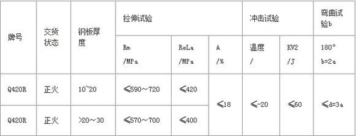 Q420R鋼板允許沖擊溫度零下-20°,一切根據(jù)客戶要求訂軋。可按照交貨控軋或者正火狀態(tài)交貨。